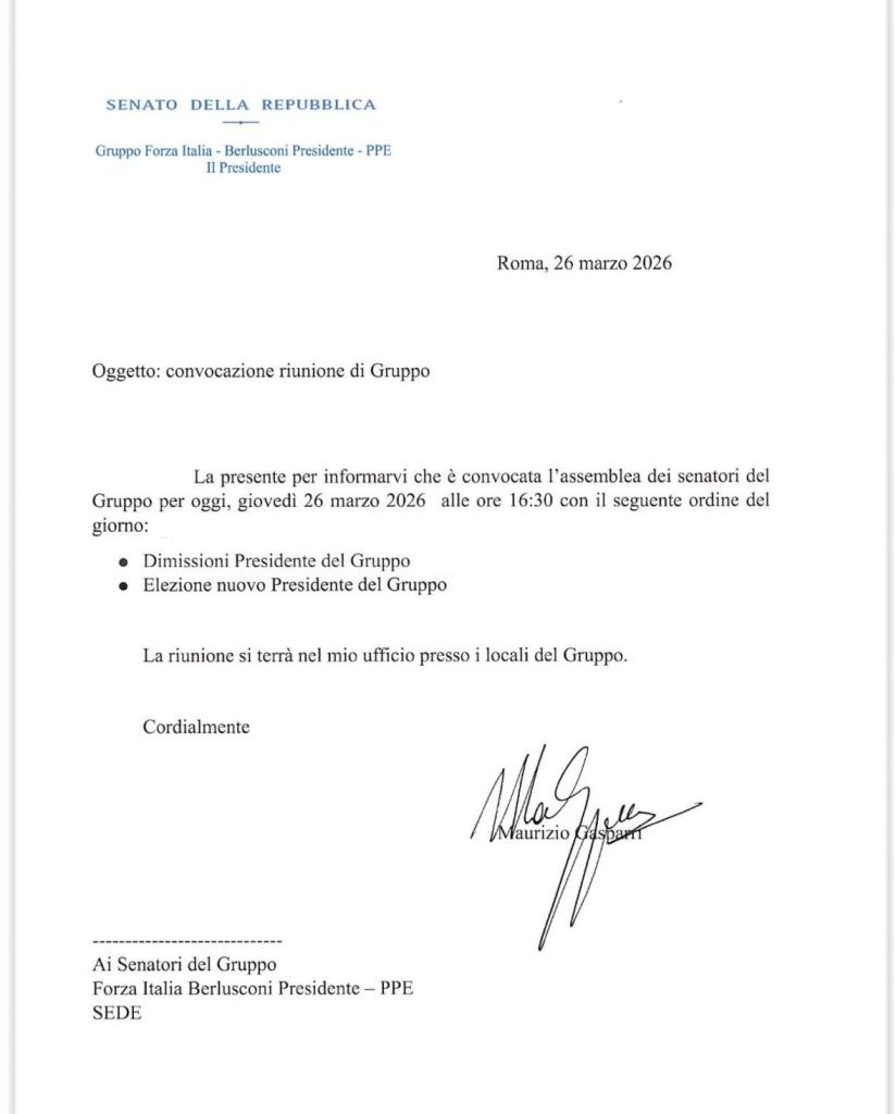 È ufficiale: Maurizio Gasparri si è dimesso da capogruppo di Forza Italia al Senato. La notizia, che l’Identità aveva anticipato, ha trovato conferma definitiva dopo un vertice lampo a Palazzo Madama.