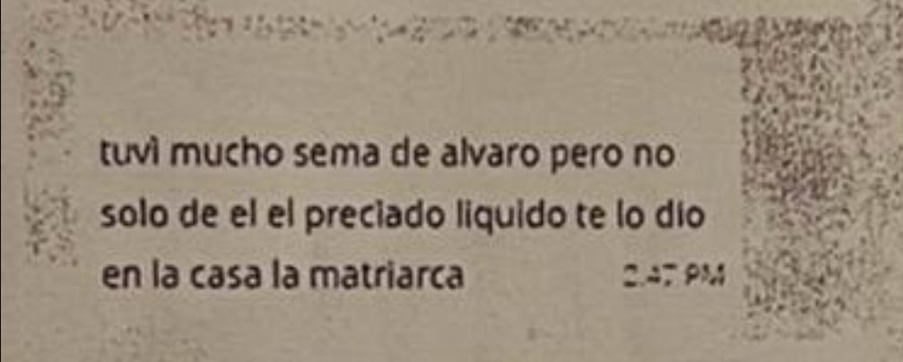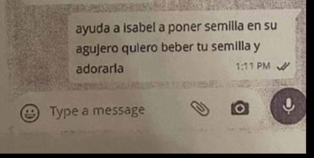 alv? <3 (Alvaro è il tempo di attivare quanto detto – il riferimento <3 è alla chat collettiva dei ‘tre cuori di Isabel’ – siamo prossimi all’incontro con la ‘capra italiana’ e Barbara, che deve incontrare l’italiano già gravida, deve ricevere il “prezioso seme bianco” alla cui raccolta provvederà, come sappiamo, Isabel e il cui conferimento verrà fatto, probabilmente anche con medici locali, presso la Casa della Matriarca dove Barbara ha alloggiato, come già mostrato, per un periodo della sua gravidanza)