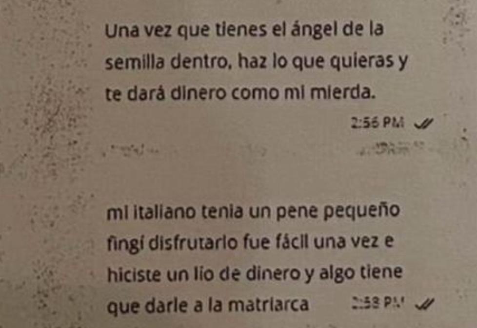 Non ci sarebbe dunque nessun romantico “congiungimento amoroso” con lo pseudo-santone per generare questa specie di “semi-dei” quanto, piuttosto, il suo “gene” sarebbe un premio della Matriarca per le adepte che abbiano “individuato” (probabilmente online e con l’aiuto di persone che fanno profilazione, ndr) la propria “capra italiana” a cui sottrarre soldi da condividere con l’organizzazione.