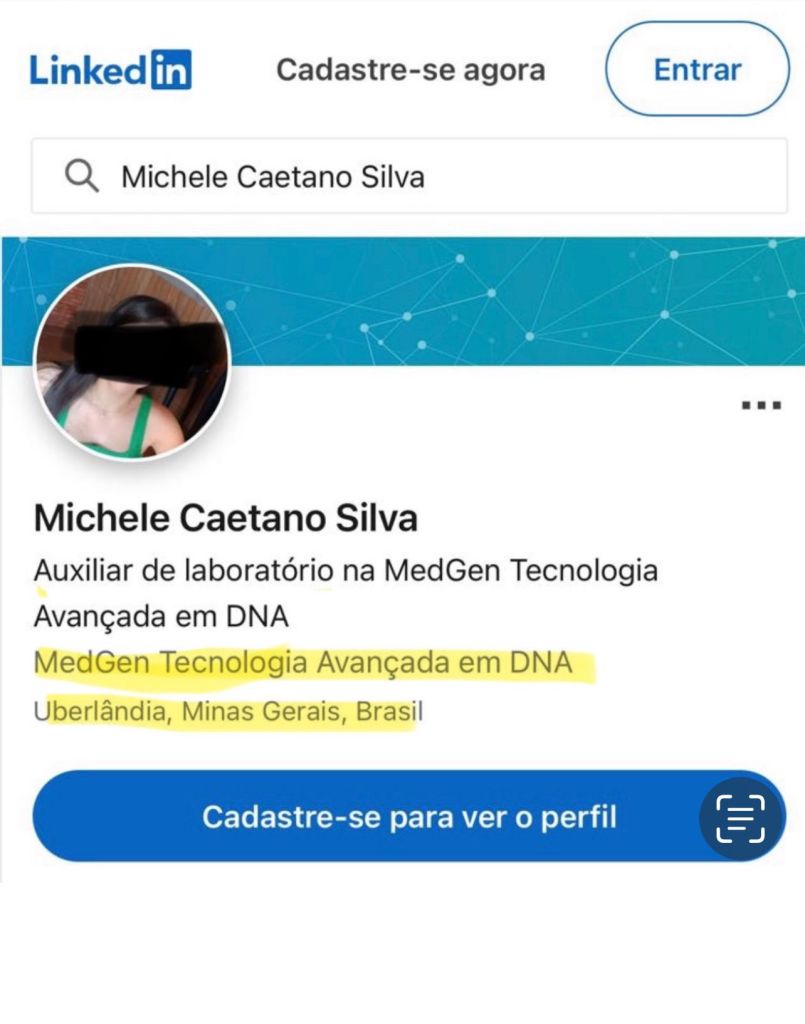 Foto LinkedIn Michele Caetano Silva operatore sanitario – Genomic Engenharia Molecular São Paulo – MedGen Tecnologia Avançada em Dna – Uberlandia
