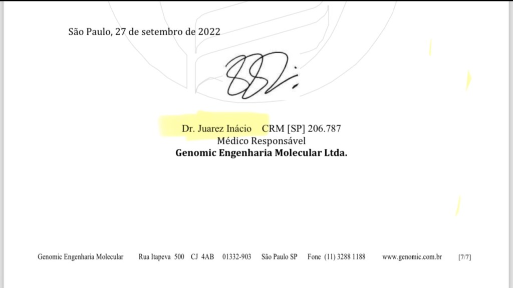Il risultato presentava la sola ‘stampigliatura’(della firma) di un medico responsabile, tale Dr Juarez Inacio, priva di autenticazione, che invece poi si ‘ricorderanno‘ di apporre in quello successivo.