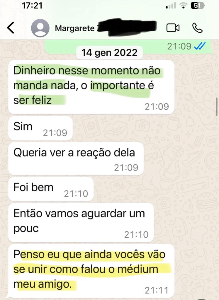 Margarete Zandomenico – soldi e dottrina espirita – Foto Whatsapp 27 gennaio 2022