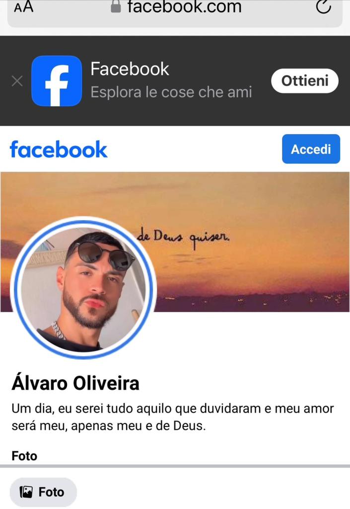 E’ quello che sarebbe dovuto essere il profilo reale dell’ Álvaro salvavidas dell’intera vicenda. E’ estremamente dettagliato, anche con le “amicizie” di riferimento, tra cui un certo Carlos Esteves detto “Boby” (anch’egli, da alcune indicazioni investigative, possibile “frequentatore” della “Casa”, ndr). https://m.facebook.com/100003496878944/ Corrisponde ad “Alvaro Oliveira”, sempre di Rio de Janeiro. La sua gallery photo contiene anche quella “professionale-imprenditoriale” usata nel profilo “Alvaro Orlando”.