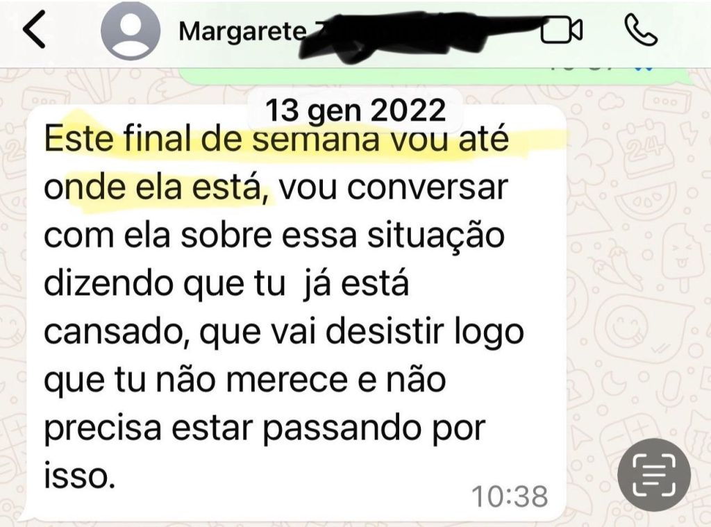 Luciano De Faveri ha un collegamento anche con un’altra protagonista di questa storia (pure attraverso i canali social), la persona che parlava con la madre (Margarete) di Barbara Zandomenico Perito, la donna che ha provato ad attribuire a Bevilacqua la paternità di sua figlia. De Faveri conosce infatti, a Pedras Grandes, Janete Zandomenico, zia di Barbara, infermiera ostetrica pubblica e a conoscenza dei riti di magia nera praticati sull’avvocato italiano e su “molte altre persone in lavorazione” da parte di “quella là”, molto probabilmente la “Matriarca” di questa storia.