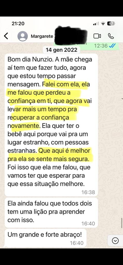 Numerosi gli interrogativi finora posti e i fatti chiariti nella loro verità sulla scorta di documentazioni concrete, dall’avvertimento a Bevilacqua di stare lontano durante la gravidanza con minaccia di denunzia di stalking e successivamente (dopo la “presunta“ nascita) la minaccia di denunzia (estorsiva ndr) per ‘abbandono’ della signora Barbara durante la gravidanza, se non avesse iniziato subito a pagare. Tutto ciò, anche senza produrre esami medici che giustificassero le spettanze (nel 2022), con l’ormai nota relazione alla polizia civile di Tubarao con la quale (nel 2023) appariva palese il tentativo di ostacolare le indagini, debitamente comunicate e appena iniziate da parte dell’ Advogado Edson Ribeiro, con una relazione non solo risultata mendace nel merito ma addirittura basata su “falsità di presupposto” nell’atto pubblico, come il luogo di lavoro. Cosa altro sarebbe accaduto se Bevilacqua avesse accettato l’incontro “trappola” a Tubarao, presente solo l’avvocato di Barbara, la quale (in assenza di avvocati di Bevilacqua ndr) così lo proponeva minacciando “conseguenze” qualora non avesse sottostato alla richiesta, come nella chiamata dell’11 maggio 2022 già contenuta nei nostri precedenti articoli?