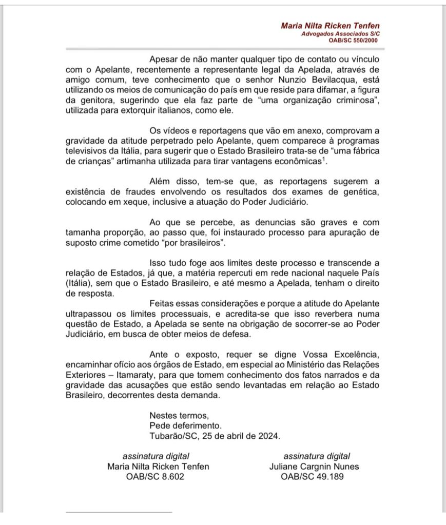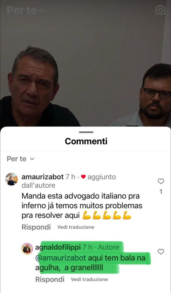 Per la loro “narrativa d’emergenza” Bevilacqua è’ un “mafioso”, “una canaglia”, “un ritardato”, “deve bruciare all’inferno”. E la stampa italiana avrebbe scritto su questa storia solo “fake news” contro una supposta “brasilianità“ e per un mero intento (proprio così da loro fantasiosamente definito prima dall’avvocatessa di Barbara – Maria Nilta Ricken Tenfen nella “surreale” petizione e poi ribadito da Filippi nella telefonata in oggetto, ndr) di incrinare i rapporti d’affari tra l’Italia e il Brasile.