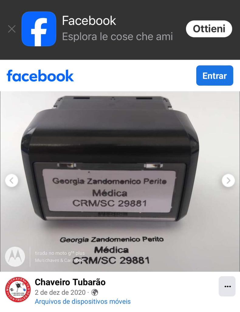 Foto pubblica da Facebook relativa a Georgia Zandomenico Perito, Medica, Santa Catarina